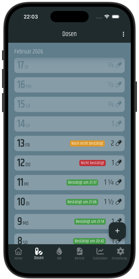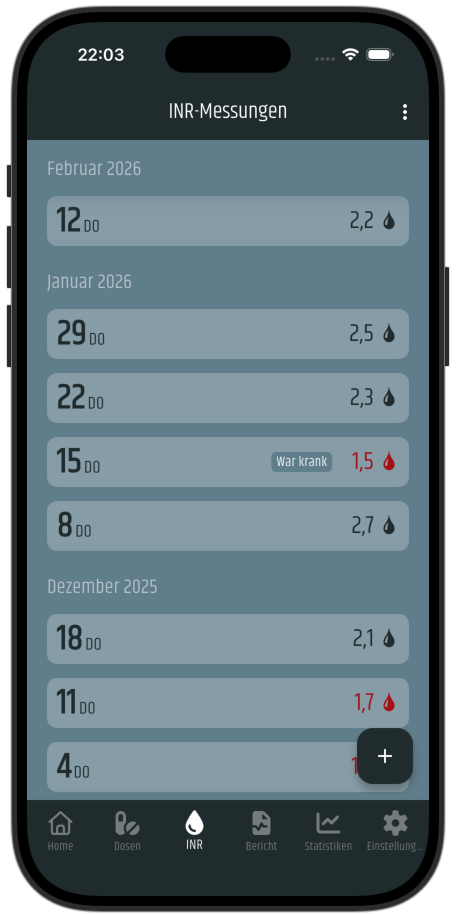 Etwa zur gleichen Zeit war ich auf der Suche nach einem interessanten Fallbeispiel für meine erste Android-App. Mit meiner Frau als Versuchskaninchen entwickelte ich eine erste Version. Das INR-Tagebuch war geboren!